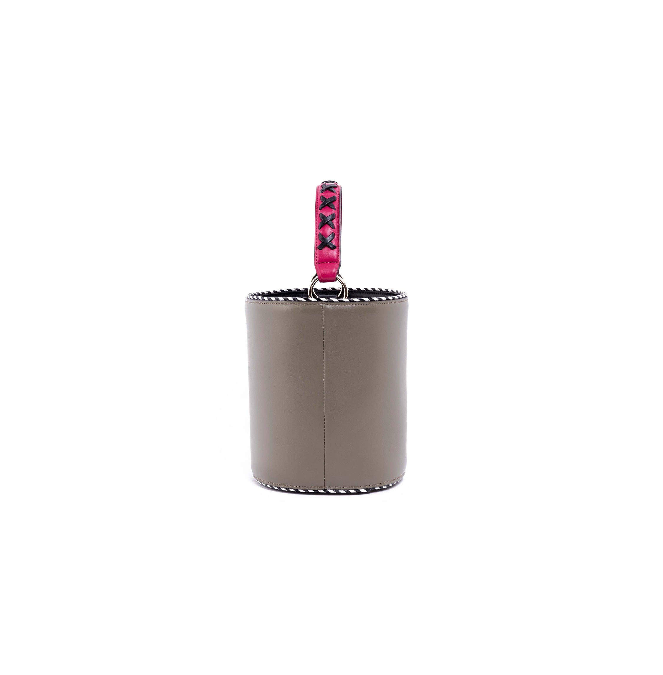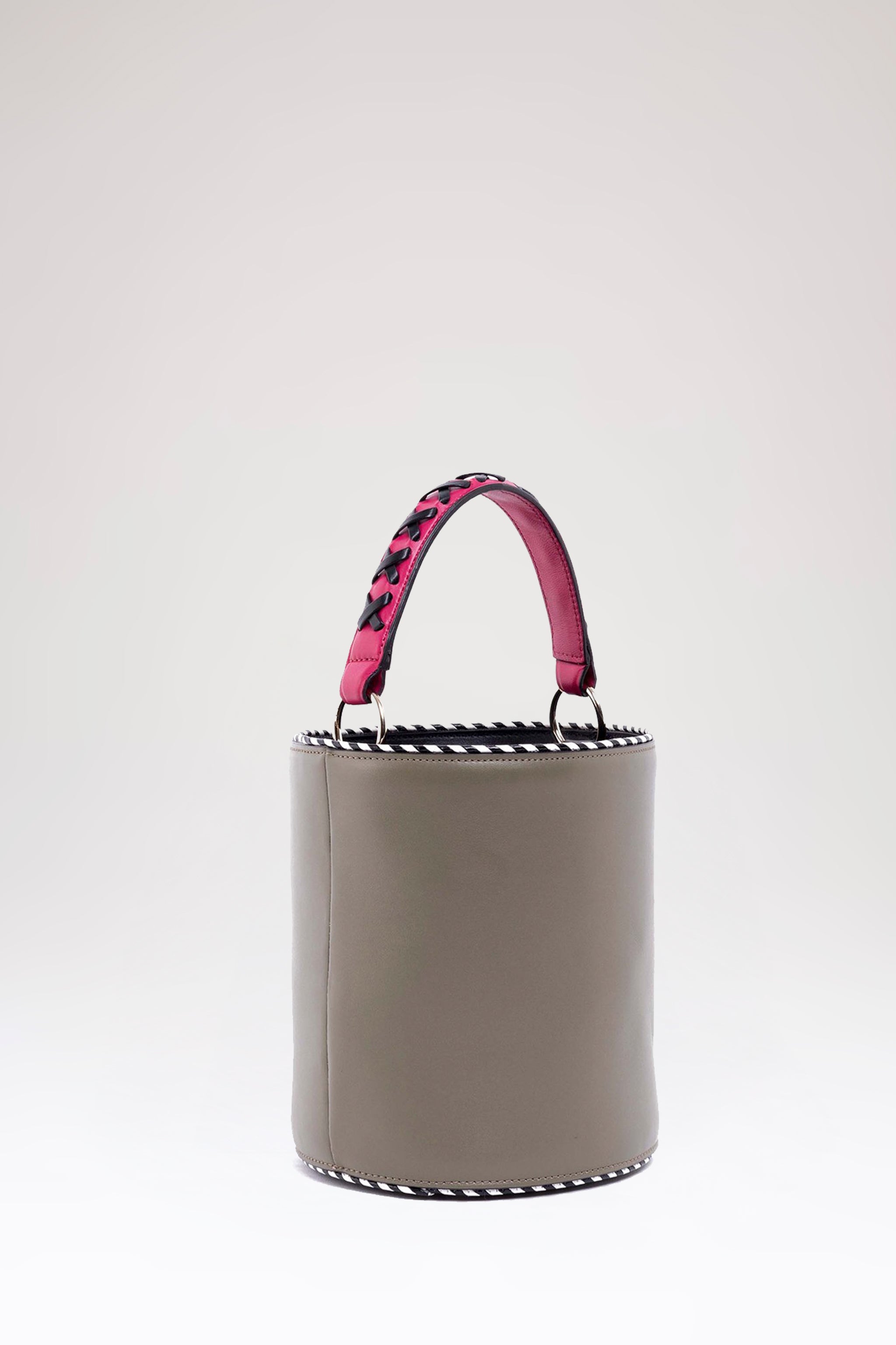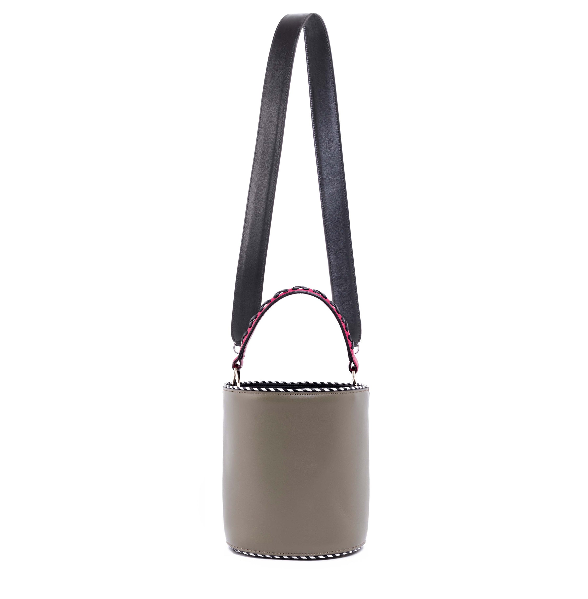 The Olivia bucket lends a contemporary feel to your look, courtesy of its structured silhouette. The bucket is complete with a drawstring top to reveal a roomy interior.