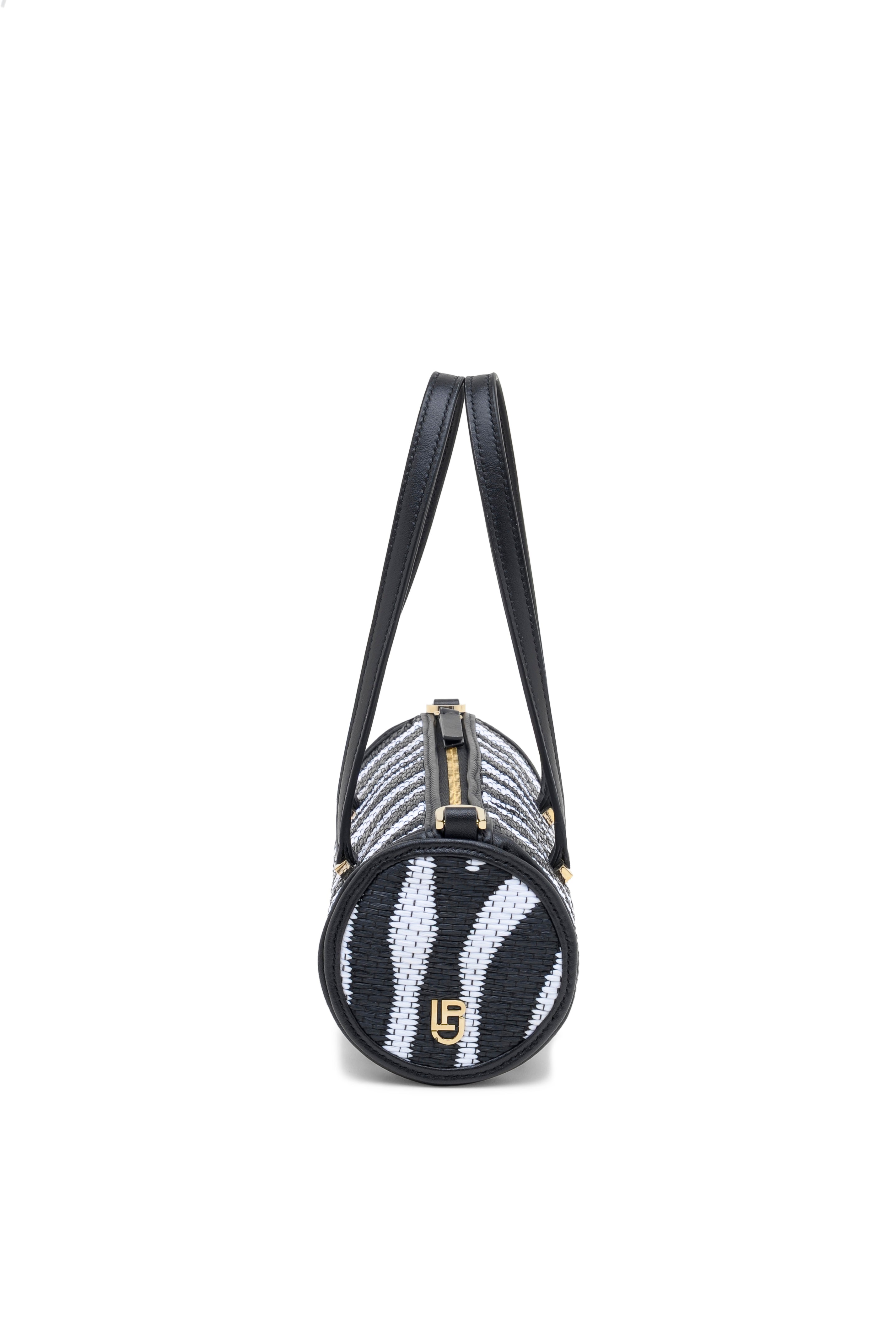 Recalling a retro imagery, the Emma transcends the '90s nostalgia into the most contemporary trendsetter.The exotic raffia bag is exquisitely knitted with an animalier pattern, adding an exquisite tactile and wild touch!