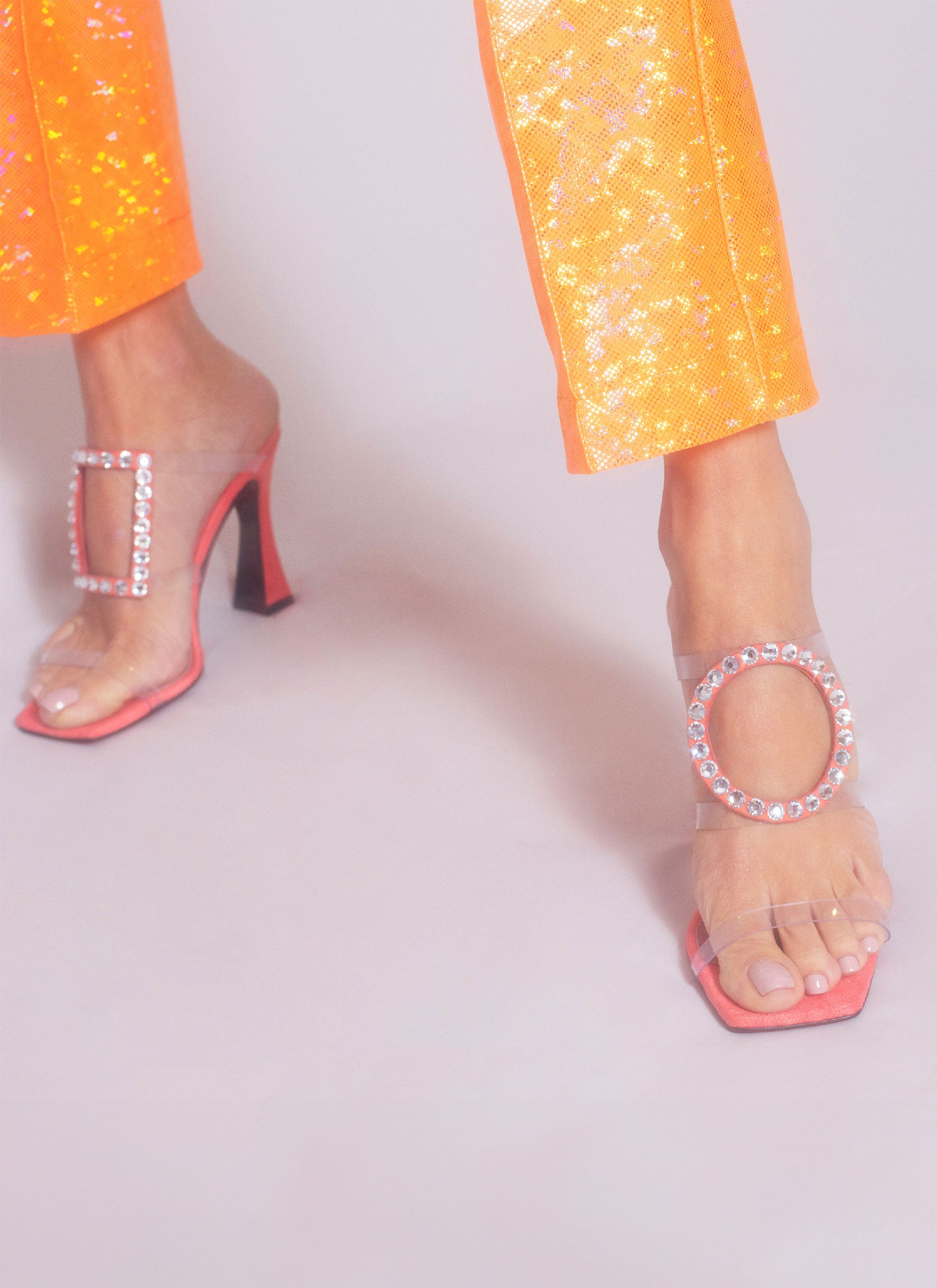 The Hoya sandals are adorned with light-catching strass geometric embellishments frames on top of the strap.